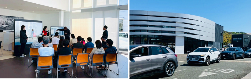 クルマ・社会・地球環境の調和を追求し、サステイナブルな未来を切り拓く、アウディの電気自動車Audi e-tron。 今回は4月末に山口県の人気観光地「萩」で自然や文化にふれるサステナブルツーリズムを意識したワンデイ試乗ツアーを開催。 電気自動車の燃費チャレンジ企画や萩焼体験を通して、お客様交流の広がりやEVの魅力を満喫いただけた1日となりました。