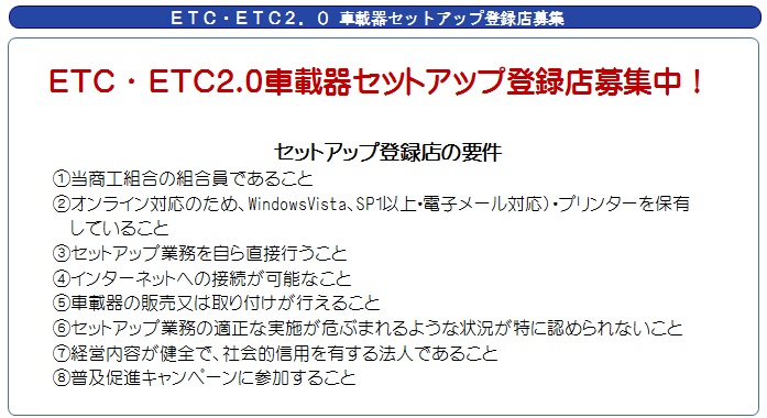 現行ETC/ETC2.0セットアップ登録店費用